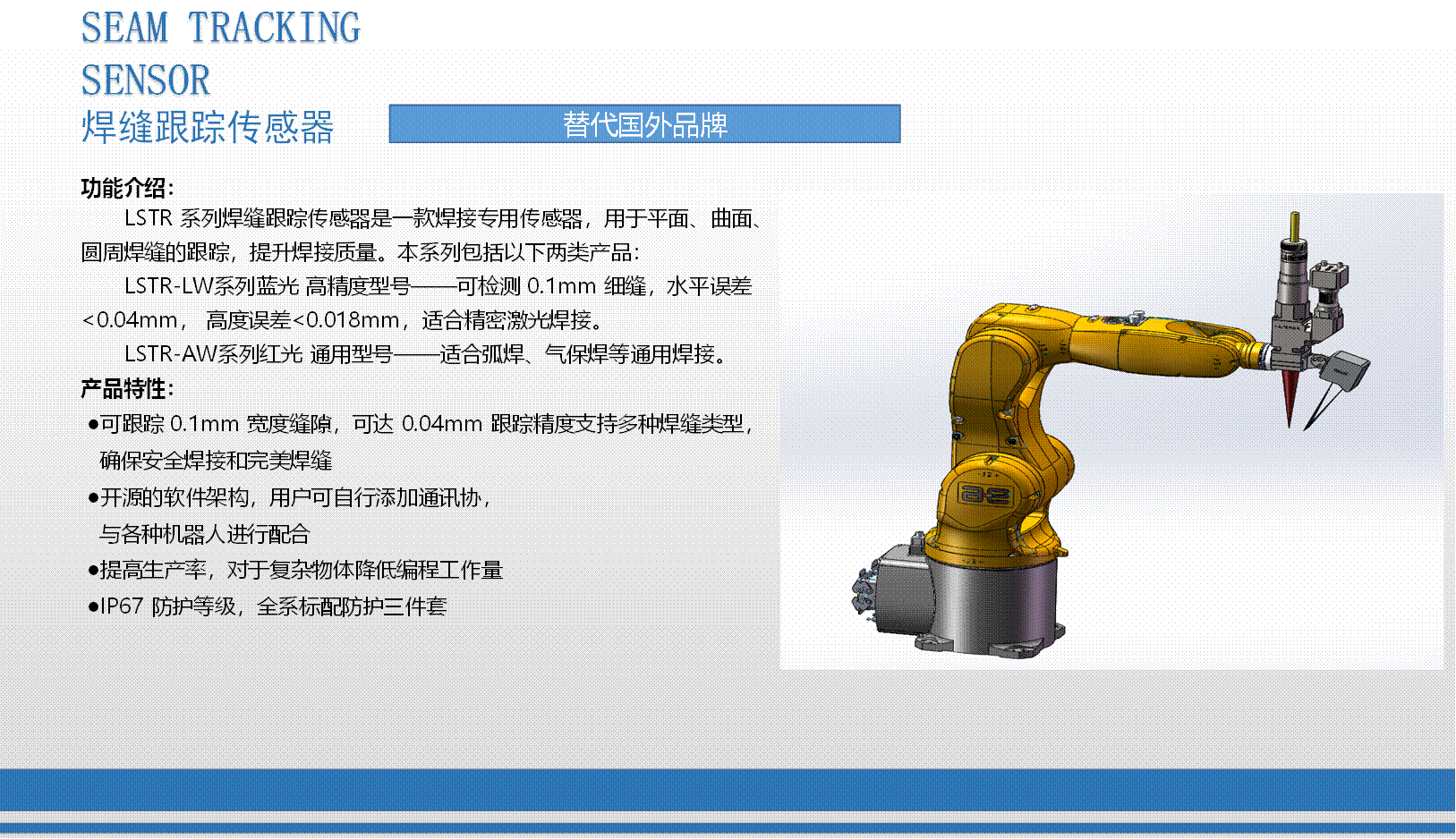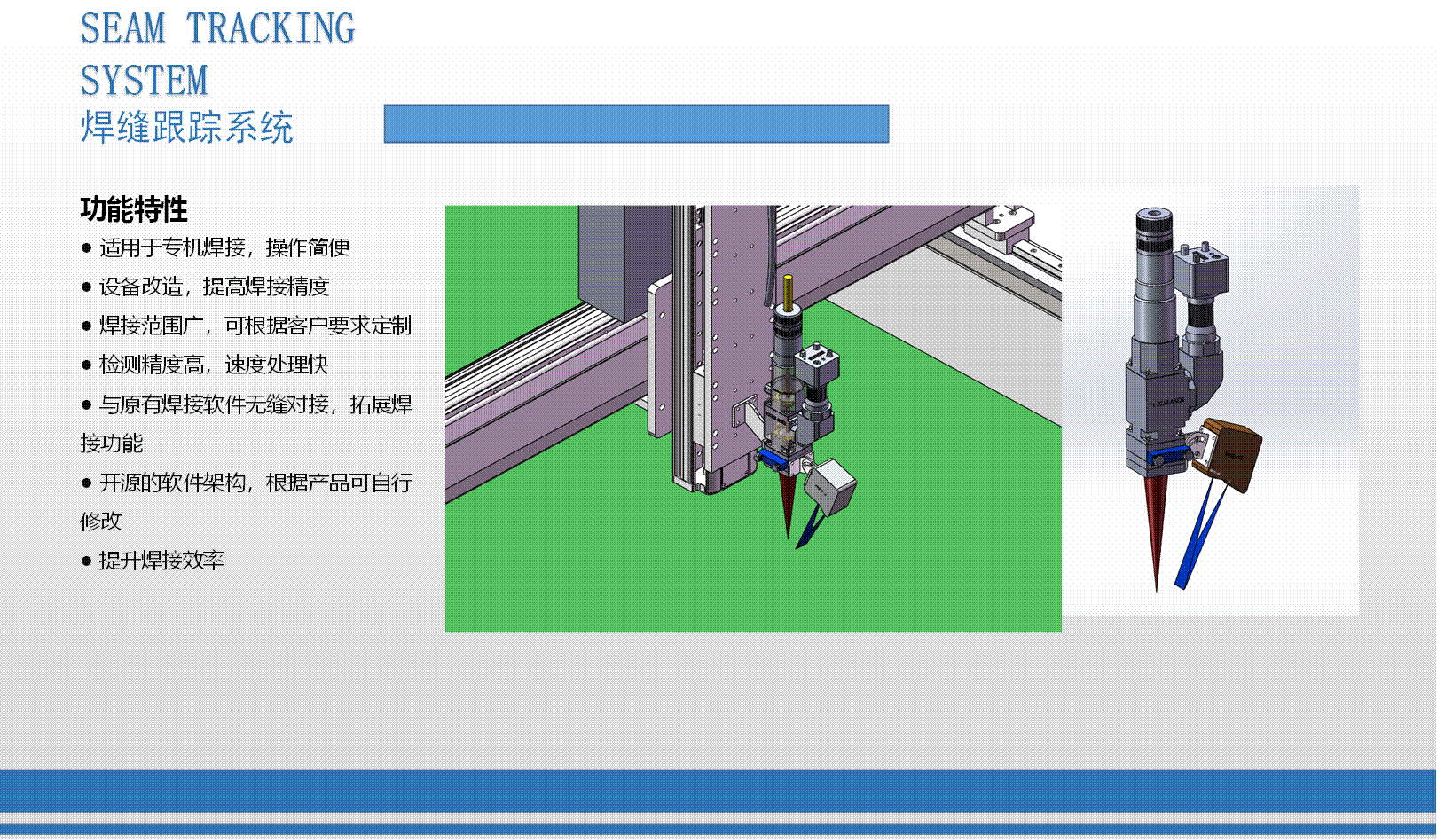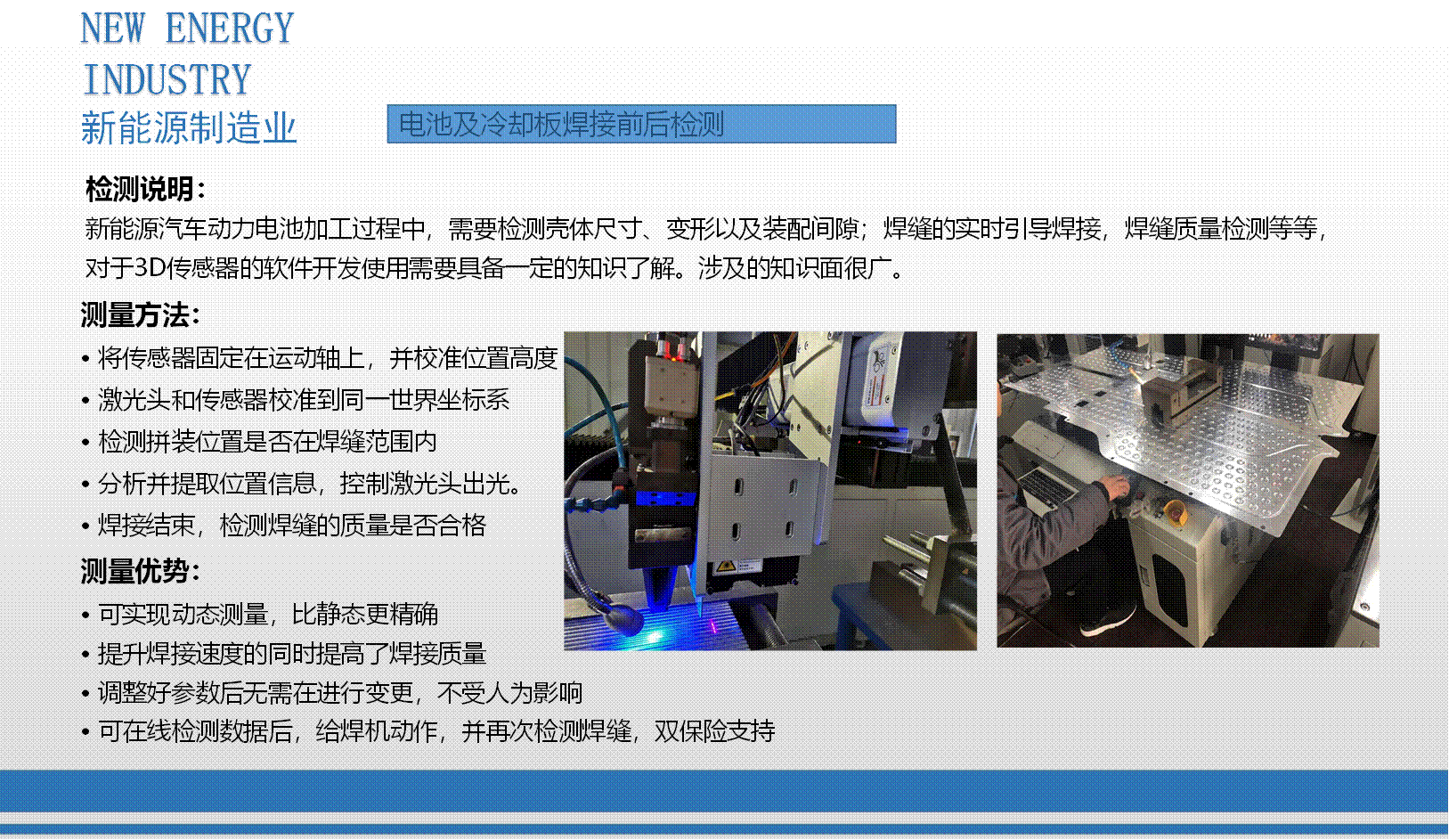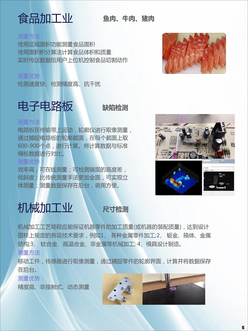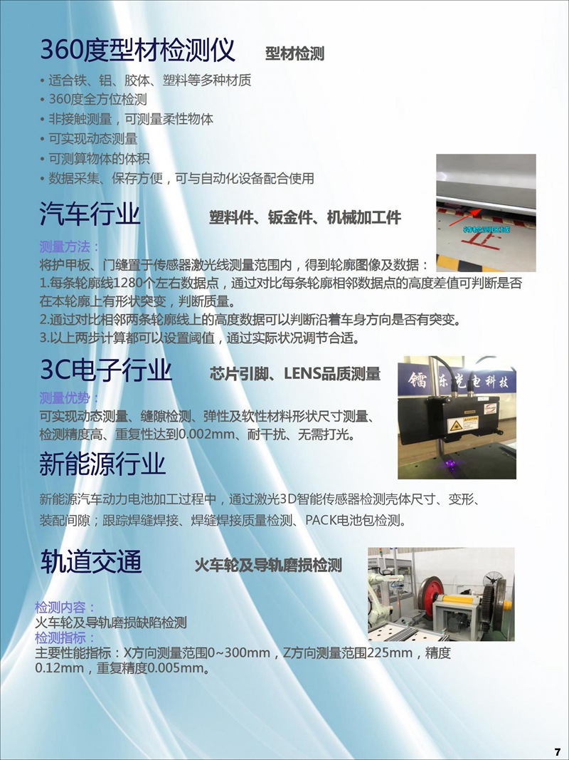 公司于2015年1月立項激光3D輪廓傳感器研發,2017年8成功開發激光3D智能傳感器,并進行各種輪廓檢測技術應用軟件與控制器開發、焊縫跟蹤系統應用開發、手持輪廓檢測儀開發。全系列產品于2018年8月均已成功上市,為廣大用戶提供量身定做的整套非接觸式智能精準測量方案。激光3D測量—非接觸式測量,可實現物體任一輪廓線尺寸測量,如高度差、寬度、角度、半徑、縫隙等,也可實現缺陷檢測、外觀尺寸掃描、表面特征跟蹤等功能。