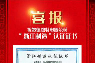 • 喜報 | 德恩特電器榮獲“浙江制造”品字標認證證書!