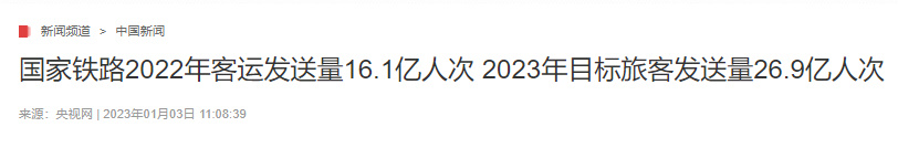 國家鐵路2022年客運發送量