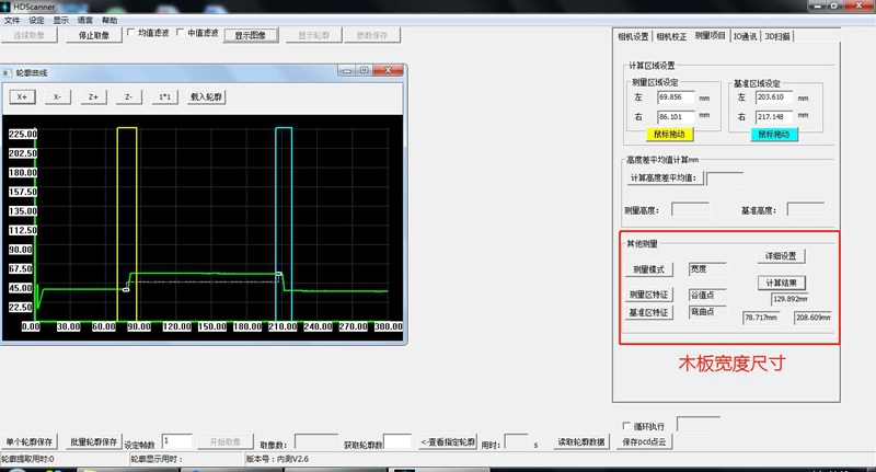 將產(chǎn)品放在激光線的檢測范圍內(nèi),通過傳送帶動態(tài)測量木板尺寸判別是否合格。