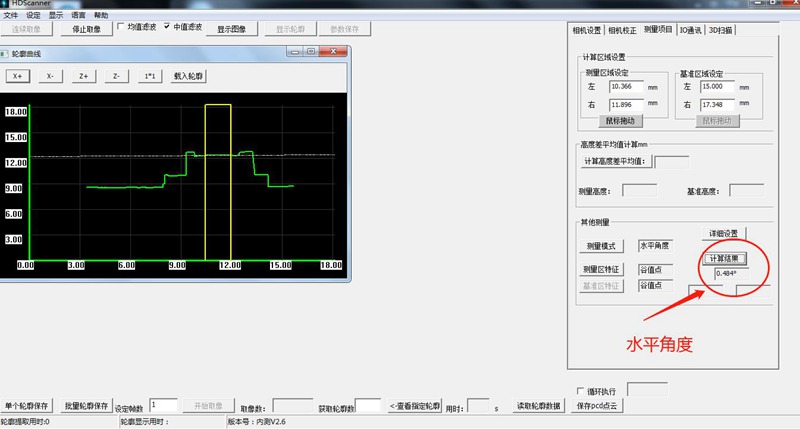 將手機CMOS放在激光輪廓線的下方,調整好位置獲取輪廓圖像。